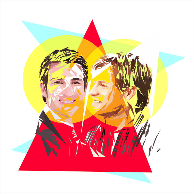 Peinture numérique sur toile de « Deux homosexuels infertiles » dans le cadre de la GPA et de la PMA correspond à une recherche picturale avec des propositions plastiques concernant le concept des déperditions de la mémoire et ce qu’elles entraînent sur la perception. J’interroge la mémoire digitale qui devient un renfort froid et non émotionnel du souvenir. Mes images sont pleines de trous à l’instar de la Gestalt. Il s’agit d’une perception relative, mais suffisante pour la reconnaissance d’un individu comme une image sortie d’un souvenir vaporeux. Il s’agit d’un travail sur la (Re)-connaissance à partir de formes clefs qui prennent sens dans une globalité servie par une structure de polygones constitués de droites (abstraction de la courbe).