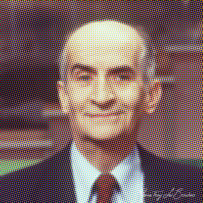 Tableau en peinture numérique de 1 mètre sur 1 mètre représentant le portrait de L. de F., une star du cinéma français reconnue pour ses qualités d’interprète.