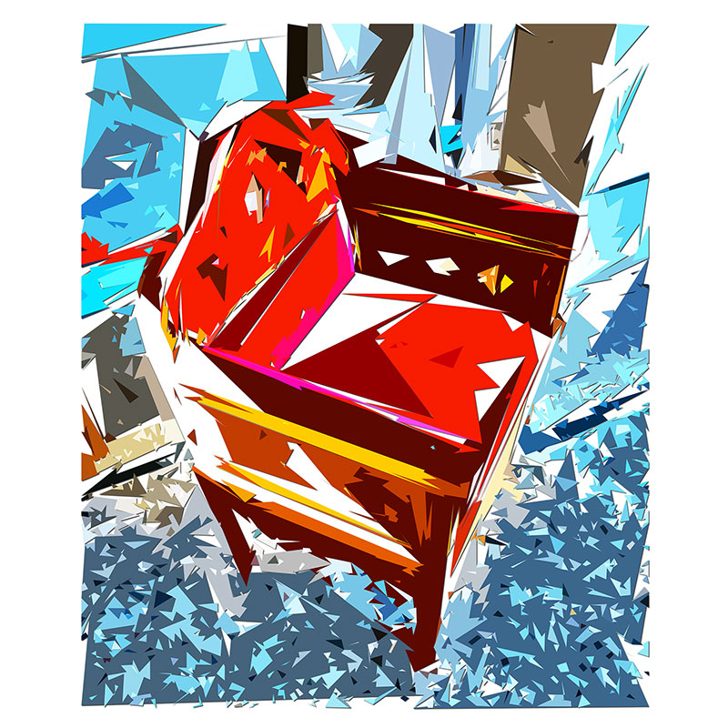 Ce travail correspond à une recherche picturale utilisant des propositions plastiques concernant le concept de la déperdition de la mémoire et ce qu’elles entraînent sur la perception. J’interroge la mémoire digitale qui devient un renfort froid et non émotionnel du souvenir. Mes images sont pleines de trous à l’instar de la Gestalt. Il s’agit d’une perception relative, mais suffisante pour la reconnaissance d’un individu, comme une image sortie d’un souvenir vaporeux. Il s’agit d’un travail sur la (Re)-connaissance à partir de formes clefs qui prennent sens dans une globalité servie par une structure de polygones constitués de droites (abstraction de la courbe).