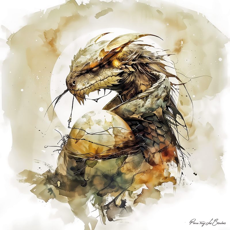 Ophion est une figure énigmatique et primordiale de la mythologie grecque, incarnant une ère ancienne et souvent oubliée. Son histoire de règne et de chute préfigure les conflits divins qui domineront la mythologie grecque, symbolisant les thèmes de la transition et de la continuité cosmique.