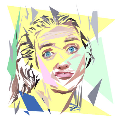 Peinture numérique sur toile de « Rachel Mente » dans le cadre de l’altération – figures de la tutelle. Ce travail correspond à une recherche picturale utilisant des propositions plastiques concernant le concept de la déperdition de la mémoire et ce qu’elles entraînent sur la perception. J’interroge la mémoire digitale qui devient un renfort froid et non émotionnel du souvenir. Mes images sont pleines de trous à l’instar de la Gestalt. Il s’agit d’une perception relative, mais suffisante pour la reconnaissance d’un individu, comme une image sortie d’un souvenir vaporeux. Il s’agit d’un travail sur la (Re)-connaissance à partir de formes clefs qui prennent sens dans une globalité servie par une structure de polygones constitués de droites (abstraction de la courbe).